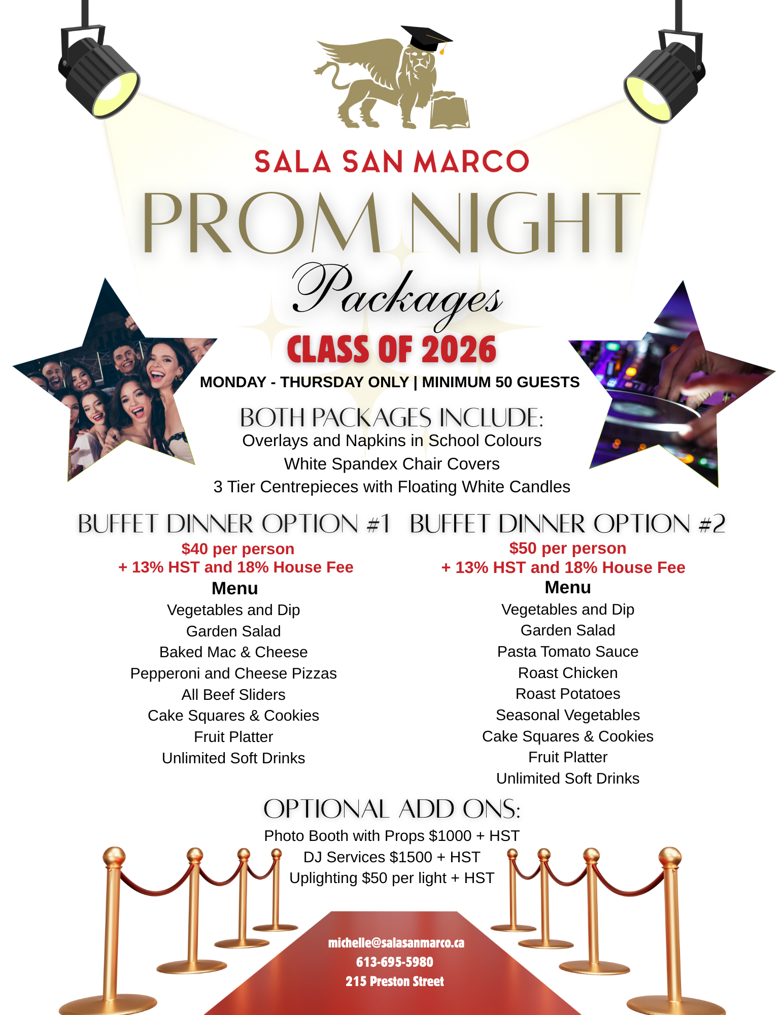 Our booking specialists would be happy to discuss Sala San Marco’s special Schools and Tour Group menus and pricing.
